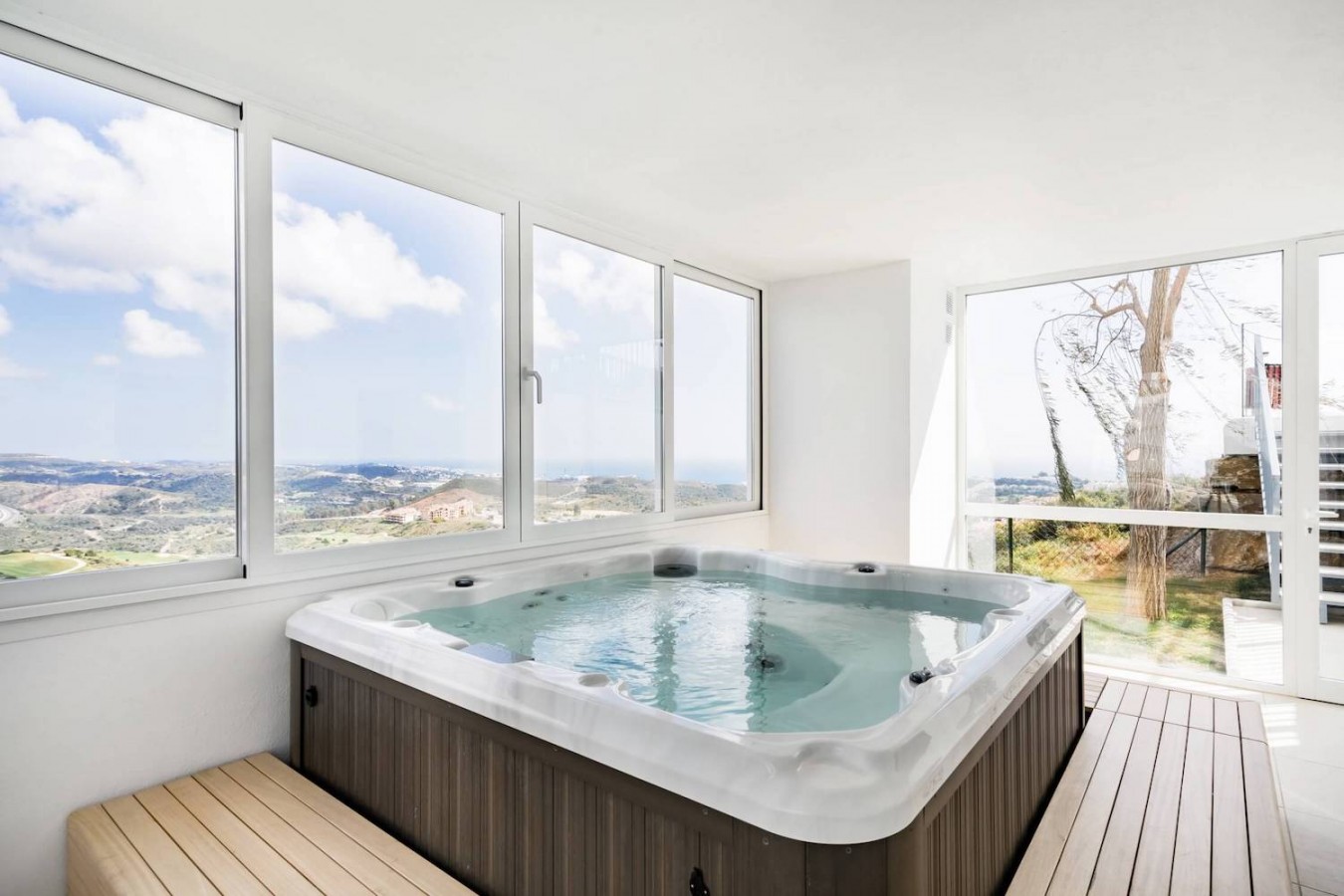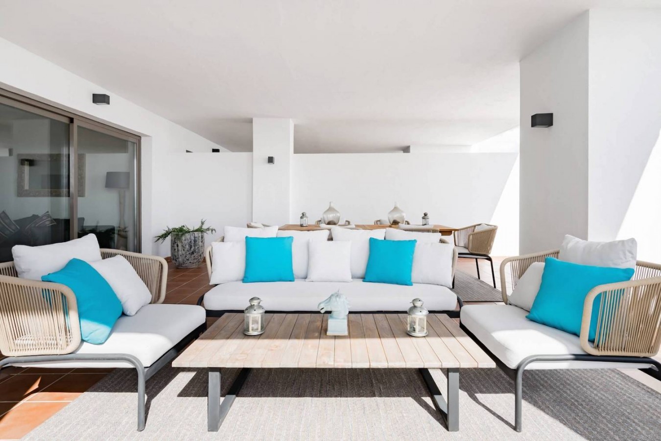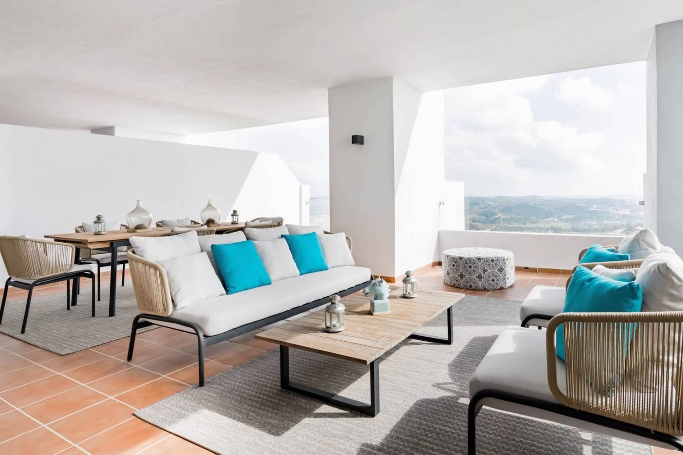 Relax on the ample airy covered terrace offering breathtaking views of the mountains, golf courses & coastline, whilst sipping on your favourite cocktail, or simply sunbathing or reading your best book.