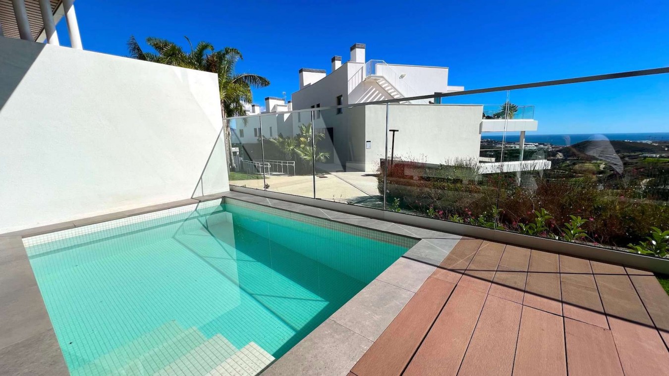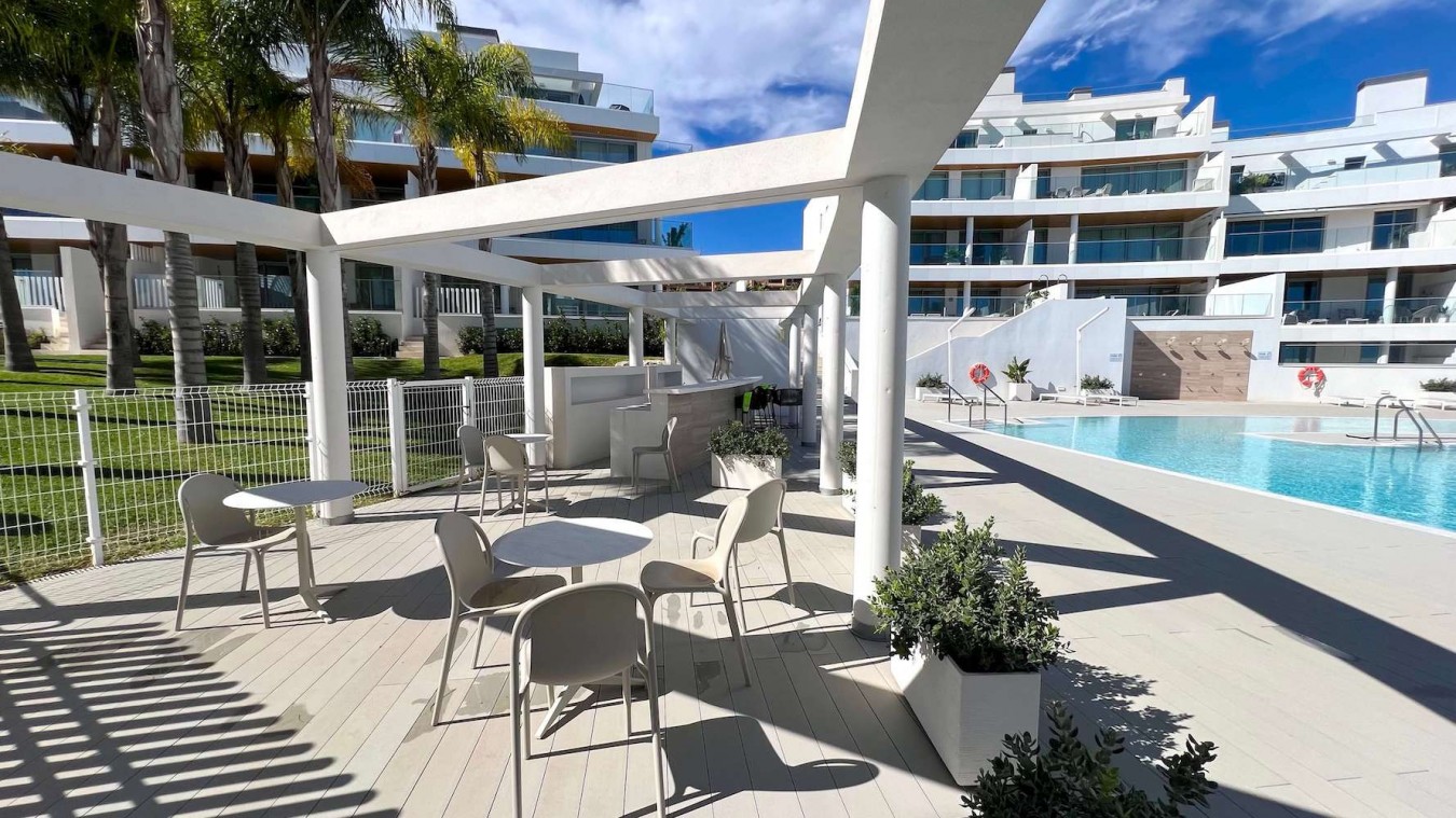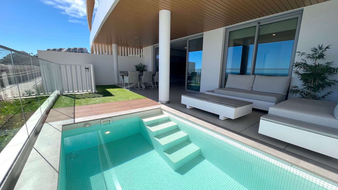 Experience the epitome of luxury living in this stunning garden pool apartment, nestled within the prestigious One Residences gated community. With a penthouse character, this modern three-bedroom layout boasts breathtaking sea and golf views from its private pool. The bright open-plan living and dining area is perfect for entertaining, featuring large floor-to-ceiling windows that fill the space with natural light.