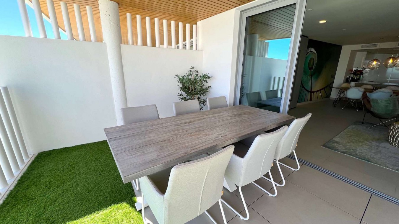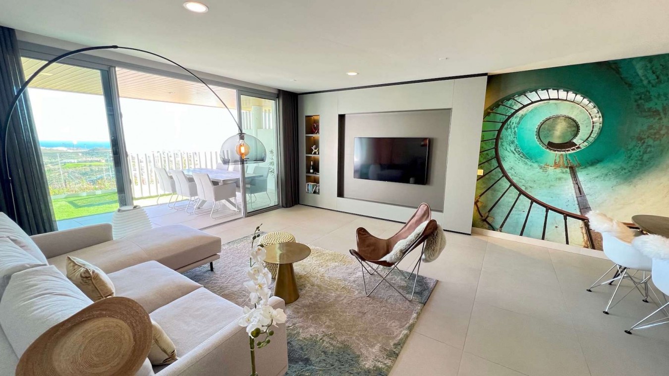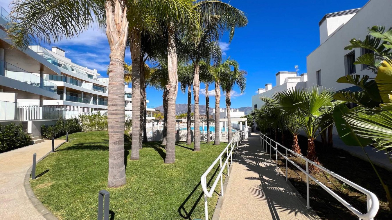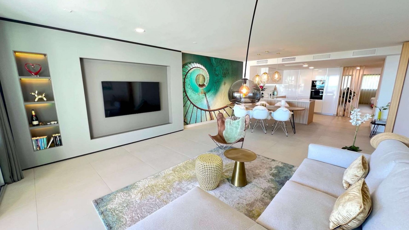 Experience the epitome of luxury living in this stunning garden pool apartment, nestled within the prestigious One Residences gated community. With a penthouse character, this modern three-bedroom layout boasts breathtaking sea and golf views from its private pool. The bright open-plan living and dining area is perfect for entertaining, featuring large floor-to-ceiling windows that fill the space with natural light.