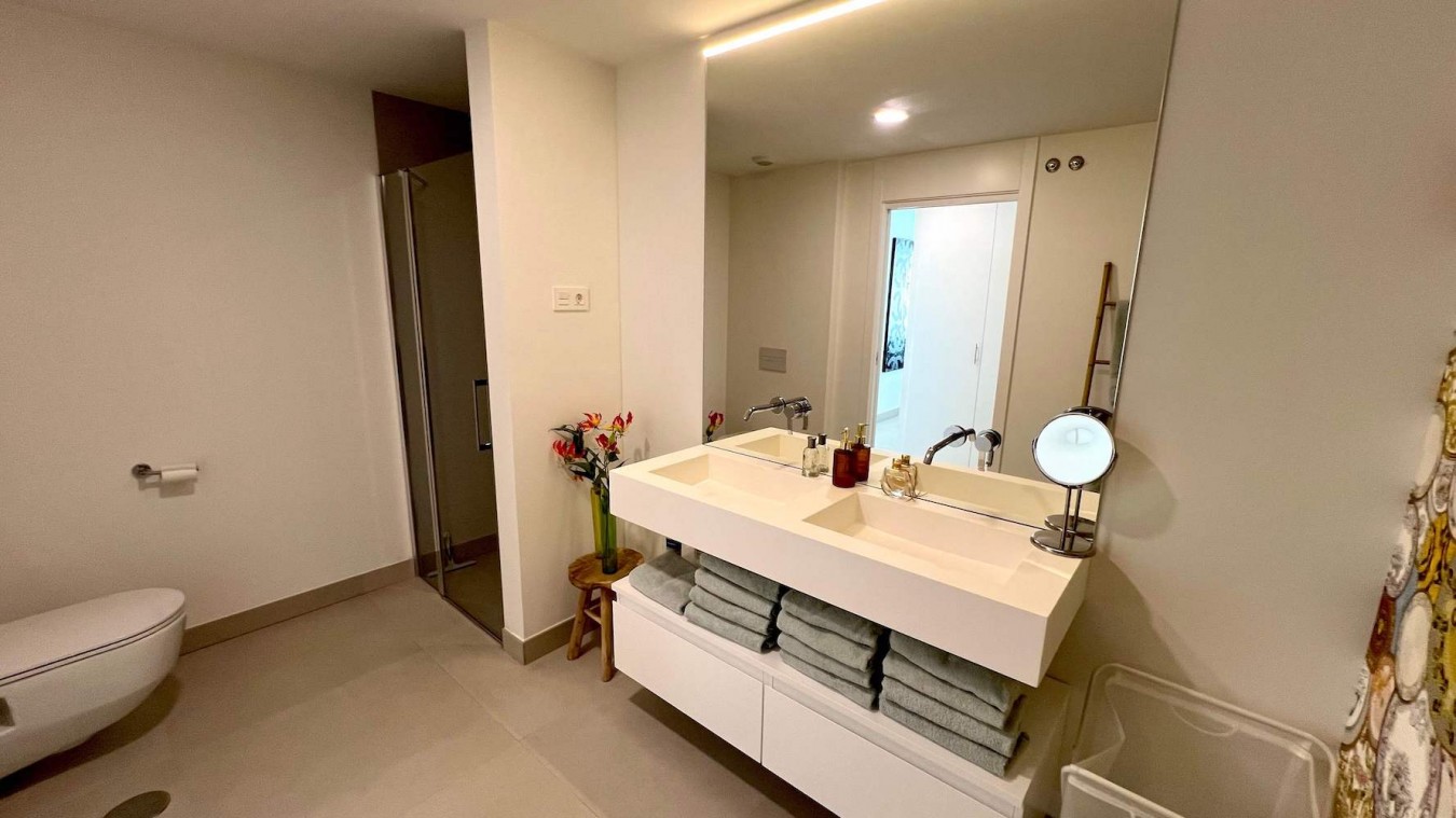 This apartment also includes a separate guest toilet, two private underground parking spaces, and ample storage. The community amenities are second to none, featuring several communal pools, landscaped gardens, a full spa with an indoor pool, fully equipped gym, cinema room, golf simulator, children's play area and even a co-working space for convenience.