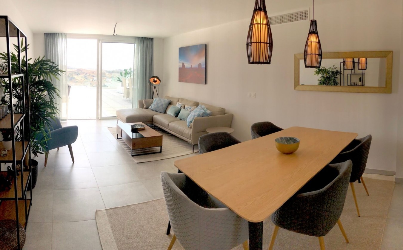 Discover luxury and comfort in this spectacular 3-bedroom apartment in the modern complex of Casa Banderas! Situated in a prime location, this apartment offers stunning views of the charming coastal area of La Cala de Mijas. With over 130 m² of space, you'll enjoy a spacious living room and a modern open-concept kitchen, equipped with everything you need for your comfort, including a Nespresso machine and a dishwasher.