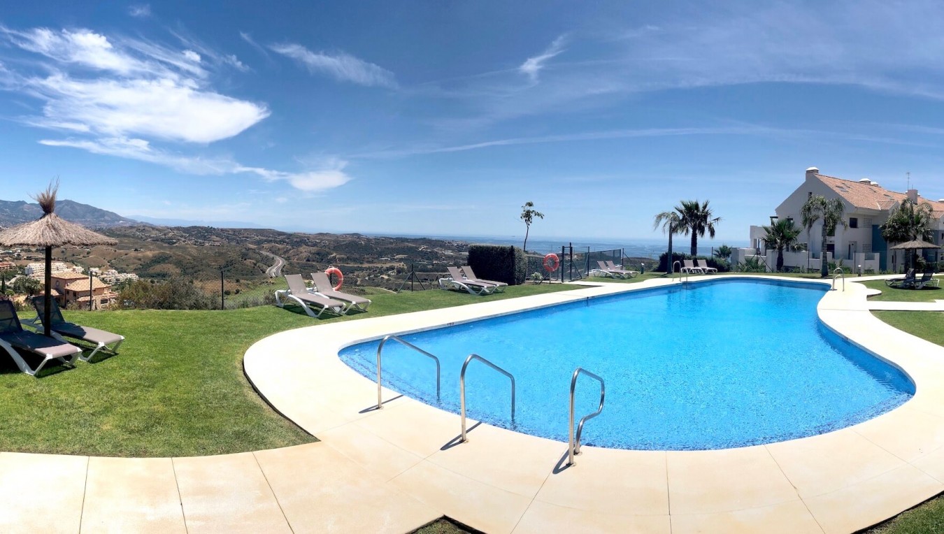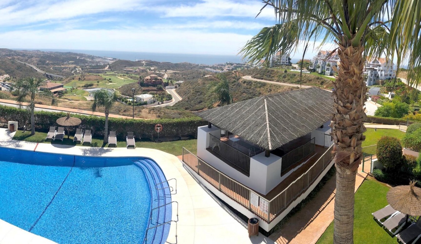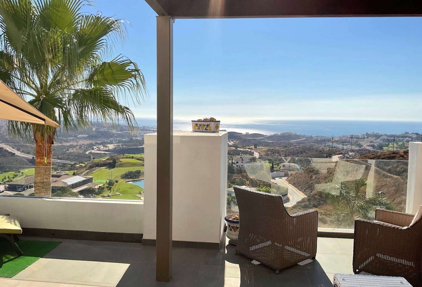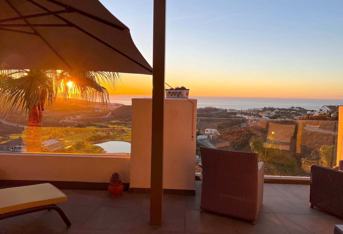 Discover this stunning modern furnished 2-bedroom self-catering holiday apartment located in the picturesque Los Cortijos, La Cala de Mijas. Overlooking the beautiful Calanova Golf course, this spacious and bright apartment is an ideal retreat for those seeking relaxation or a golfing getaway. With bright, south-facing interiors, enjoy all-day sunshine from the spacious all-year-around 40m² solarium terrace, complete with panoramic views and a covered area featuring a large pergola and collapsible parasol, plus retractable glass curtains to enjoy cooler winter evenings.