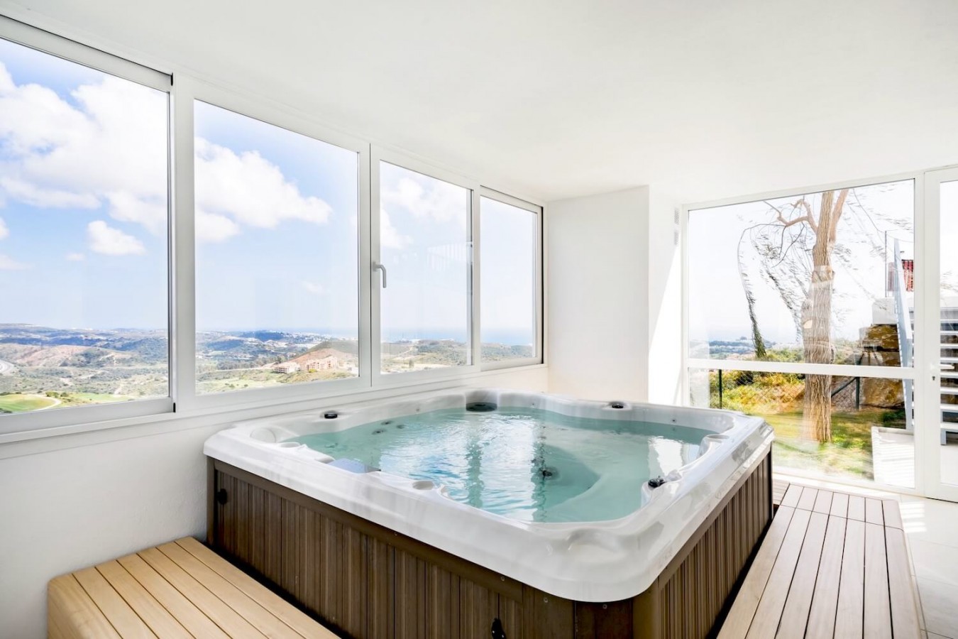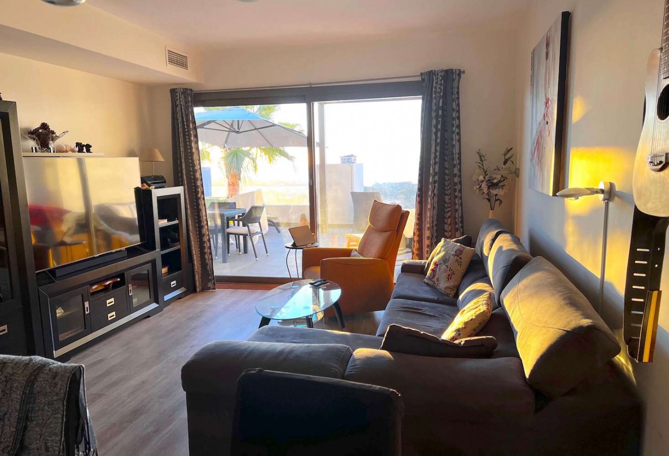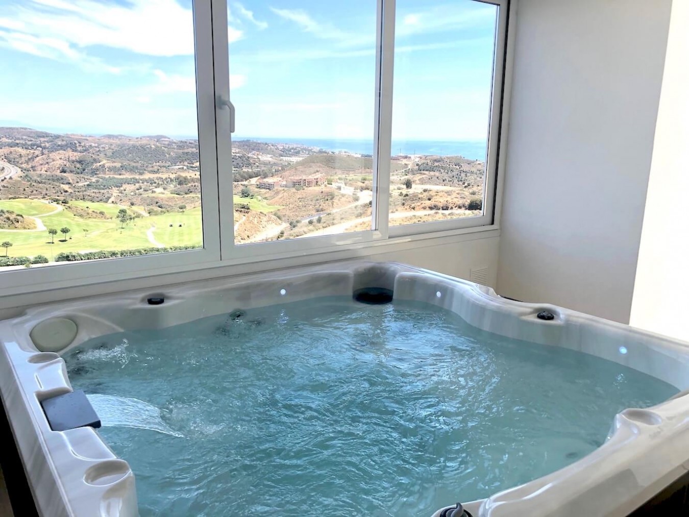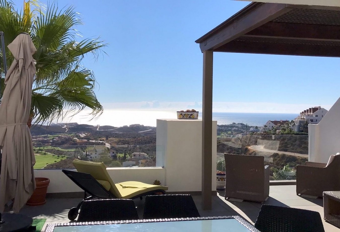 Discover this stunning modern furnished 2-bedroom self-catering holiday apartment located in the picturesque Los Cortijos, La Cala de Mijas. Overlooking the beautiful Calanova Golf course, this spacious and bright apartment is an ideal retreat for those seeking relaxation or a golfing getaway. With bright, south-facing interiors, enjoy all-day sunshine from the spacious all-year-around 40m² solarium terrace, complete with panoramic views and a covered area featuring a large pergola and collapsible parasol, plus retractable glass curtains to enjoy cooler winter evenings.